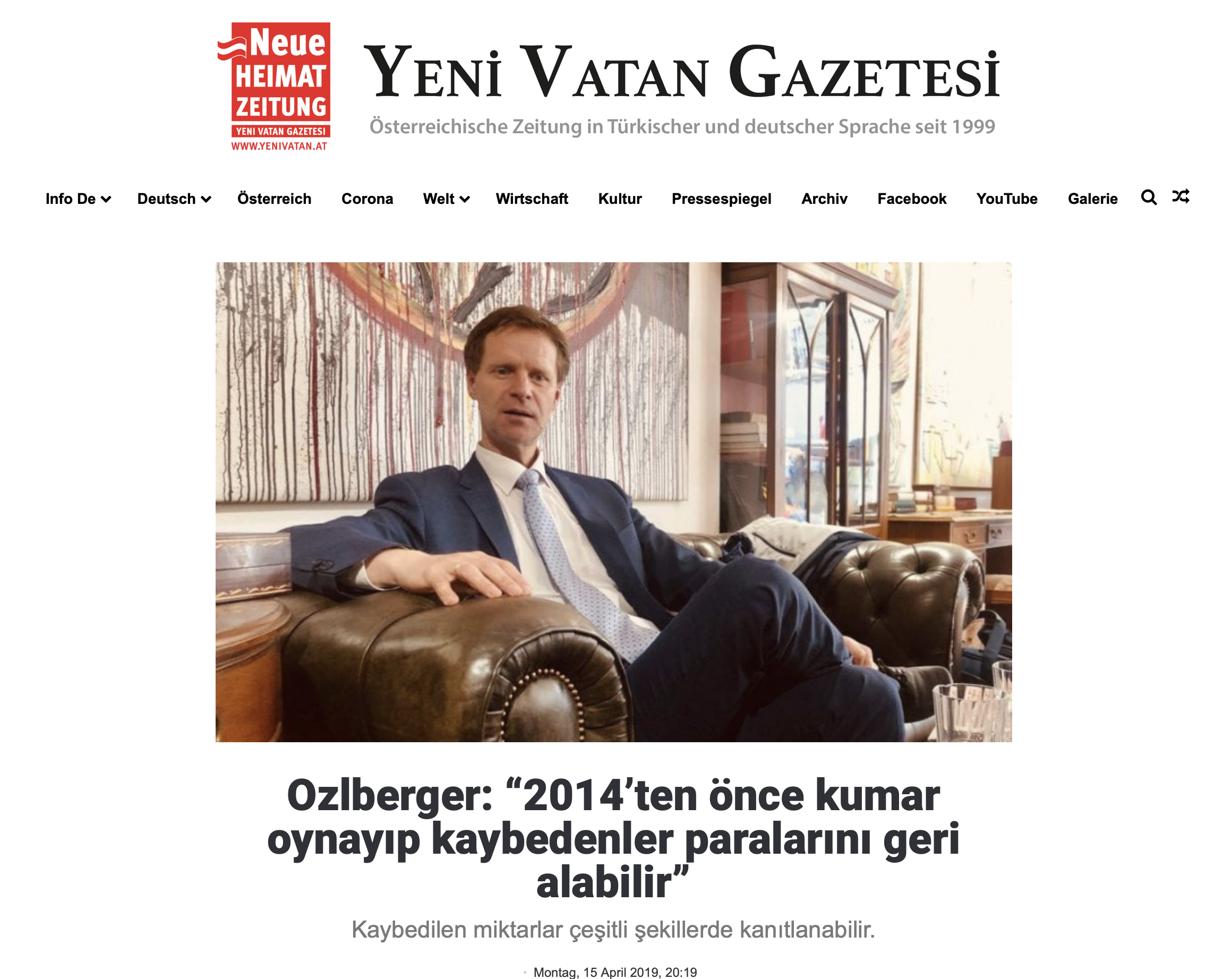 Peter Ozlberger: Büromuzun yoğunlaştığı konulardan biri, oyun makinalarında yaşanan kayıpların tazmini. Hâlihazırda zaten oyuncular lehine bazı olumlu kararlar elde etmiş bulunmaktayız. Özellikle tarihi bir karara imza attık. 2017 yılında Yüksek Mahkeme, 6 Ob 124/16b sayılı kararıyla Viyana’da 2014 yılı sonuna kadar Novomatic Grubu tarafından işletilen oyun makinalarında, oyun başına belirlenen 50 sentlik yasal oyun bedeli sınırının ve 20 avroluk kazanç limitinin aşıldığına hükmetti. Zar, kumar ve aksiyon oyunları da yasa dışıydı. İlgili karara göre kumar bağımlılığı olup olmadığına bakılmaksızın bu makinalarda oynayıp kaybeden herkes kaybını geri alabilir. Zamanaşımı, 30 yıldır. Zararın tazmini talebi ilgili işletmeye yapılır. Kaybedilen miktarlar çeşitli şekillerde kanıtlanabilir. Doğrudan oyun salonlarından ya da oyun salonlarının yakınlarındaki bankamatiklerden para çekilmiş olması en iyi kanıttır. Hesap özetinde bankamatiğin konumunu gösteren numaranın yer almasına dikkat edilmelidir. İddia ve talep için ne zaman (mümkünse saatiyle), nerede, ne kadar para çekildiğine ilişkin bir liste hazırlanması tavsiye edilir. Bir tanık da kanıt olarak gösterilebilir. (yenivatan.at)