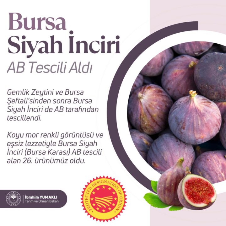 Die „Bursa Siyahı“-Feige gilt als die weltweit qualitativ hochwertigste schwarze Feige. Sie ist das charakteristische Obst der Provinz Bursa und erfreut sich zunehmender Beliebtheit sowie steigender Exportzahlen.
