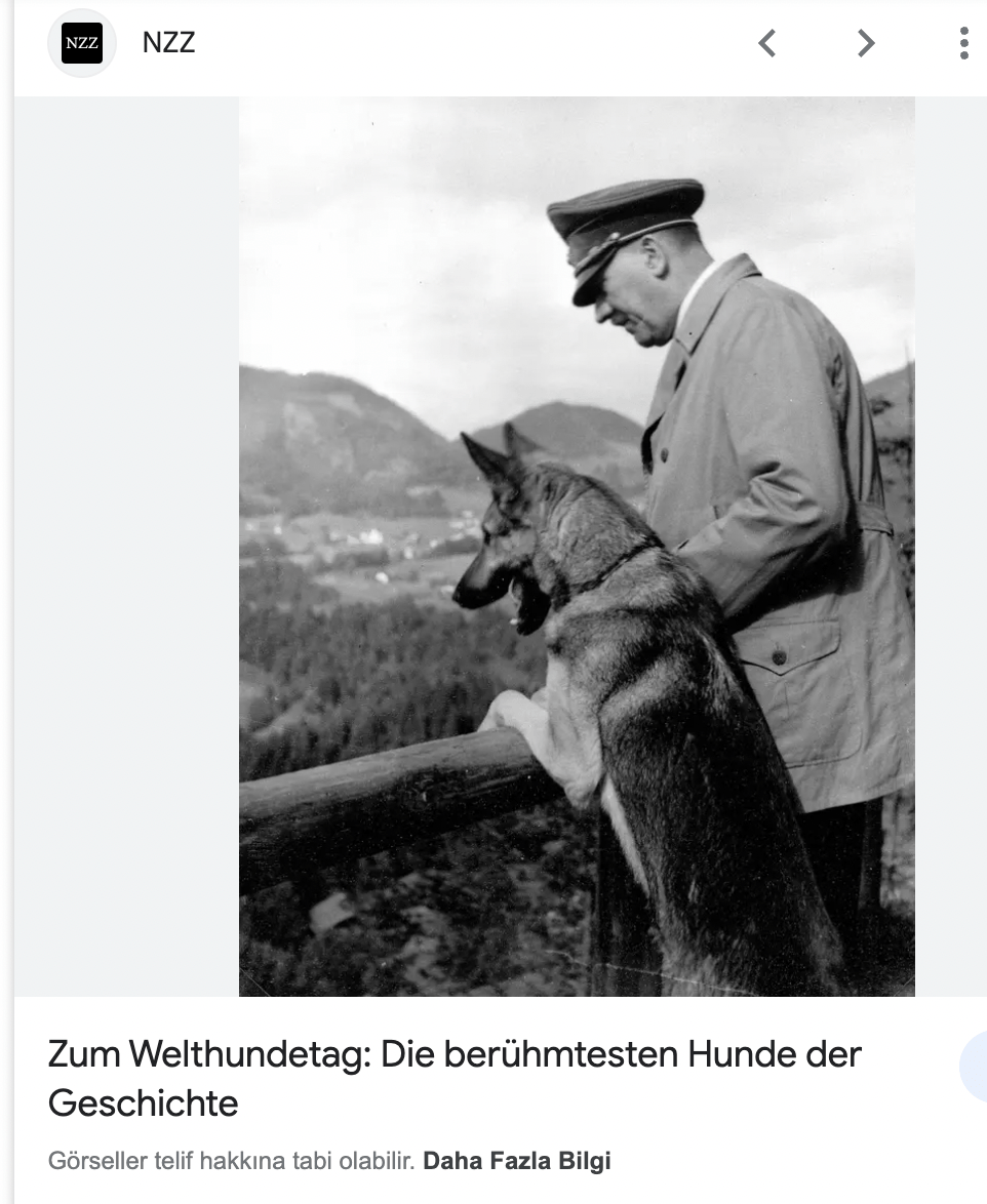Hitler´in köpeği Blondi (1941 – 29 Nisan 1945), Adolf Hitler’in dişi Alman çoban köpeği. Martin Bormann tarafından 1941’de bir hediye olarak Hitler’e verildi. Blondi, 16 Ocak 1945’ten itibaren yeraltı sığınağı olan Führerbunker’de Hitler’le beraber kaldı.