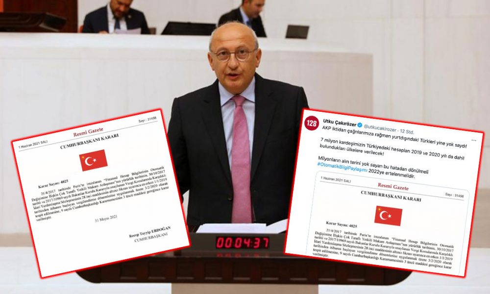 TBMM Yurtdışı Türkler ve Akraba Toplulukları Alt Komisyonu üyesi, CHP Eskişehir Milletvekili Utku Çakırözer yurtdışındaki 7 milyon Avrupalı Türkü ilgilendiren Finansal Hesap Bilgilerinin Otomatik Değişimine ilişkin uluslararası anlaşmanın ertelenmesi için yaklaşık bir yıldır AKP iktidarına çağrılar ve uyarılar yapmış, Meclis’te araştırma komisyonu kuurlmasını da teklif etmişti.