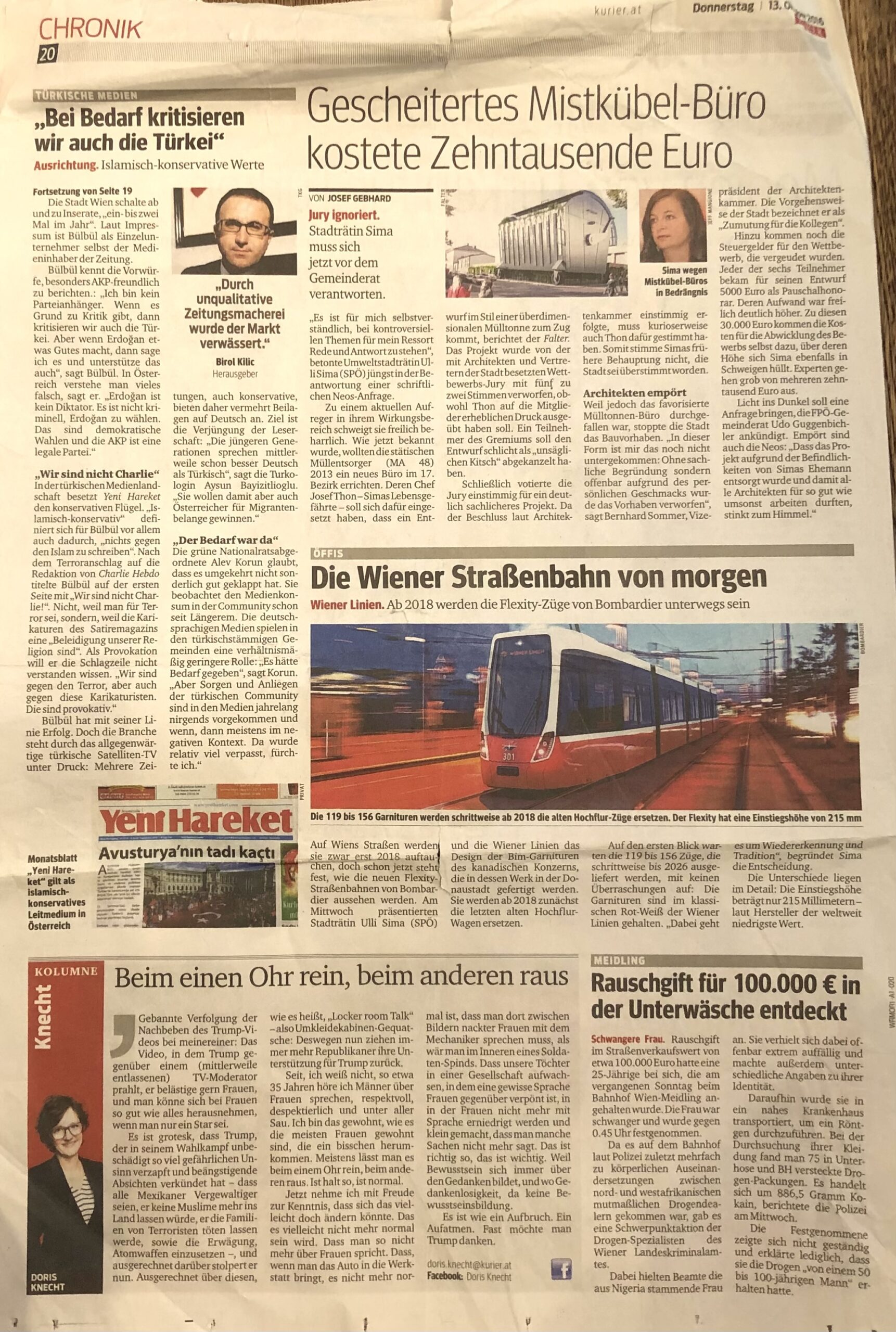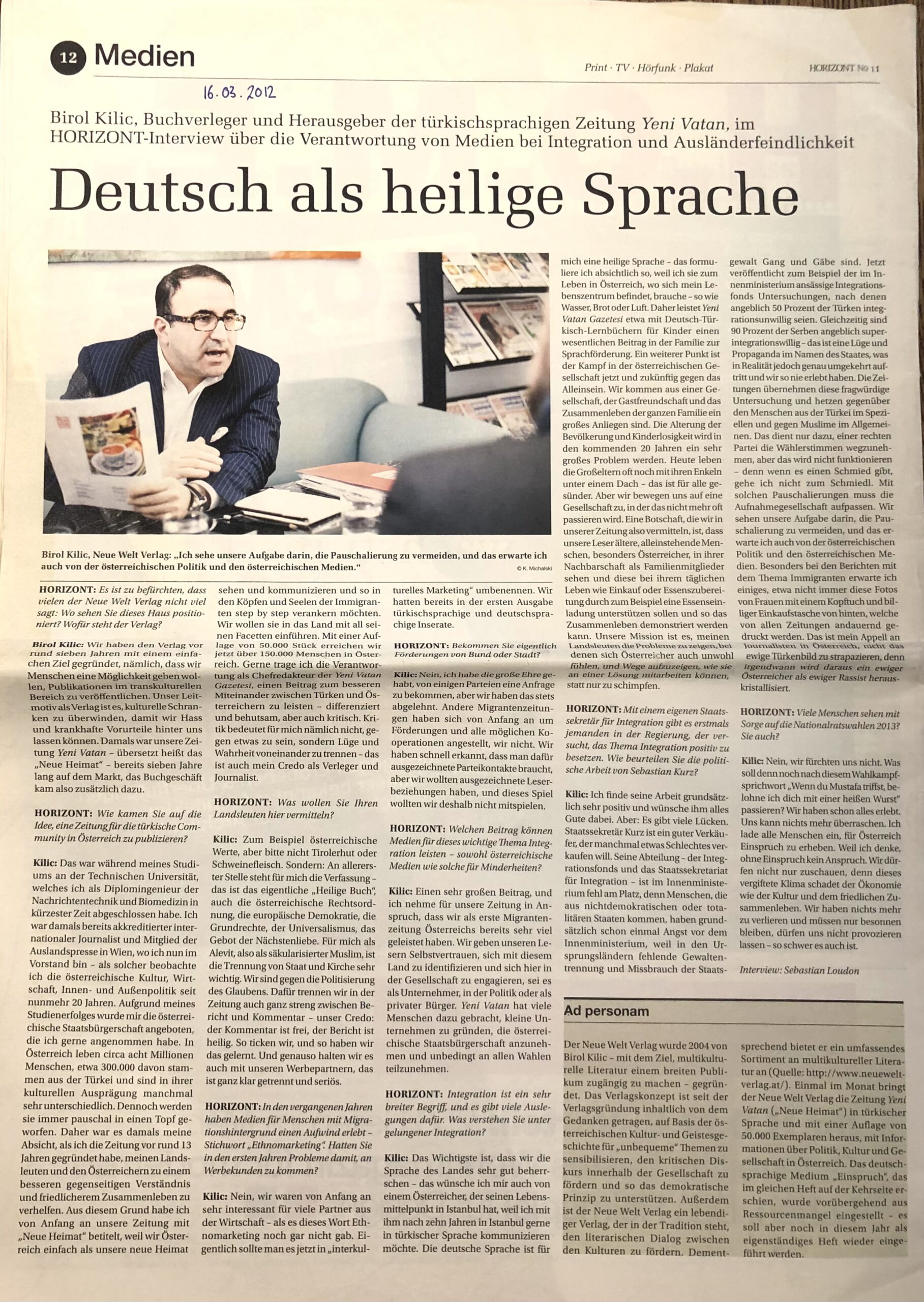 „Bei der größeren türkischen Zeitung Yeni Vatan Gazetesi (Neue Heimat Zeitung) will man sich nicht zur Inseratenlage äußern: „Dazu will ich nichts sagen. Nur so viel: Wir haben das Recht, kritisch zu sein, dafür haben die Parteien das Recht, nicht bei uns inserieren. Ich respektiere das“, meint Herausgeber Birol Kilic.“