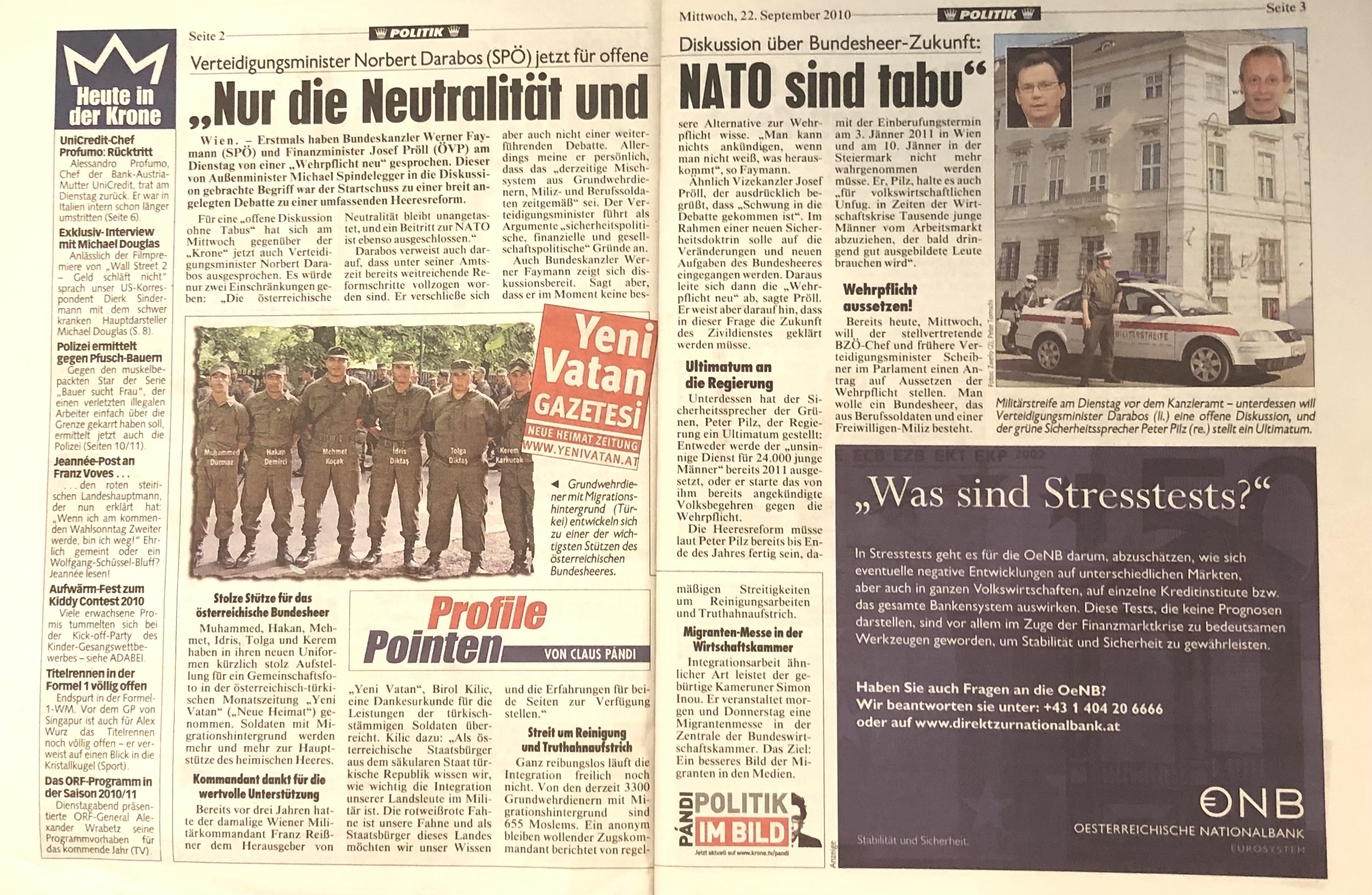 22.09.2010: Nur die Neutralität und Nato sind tabu – KroneZeitung