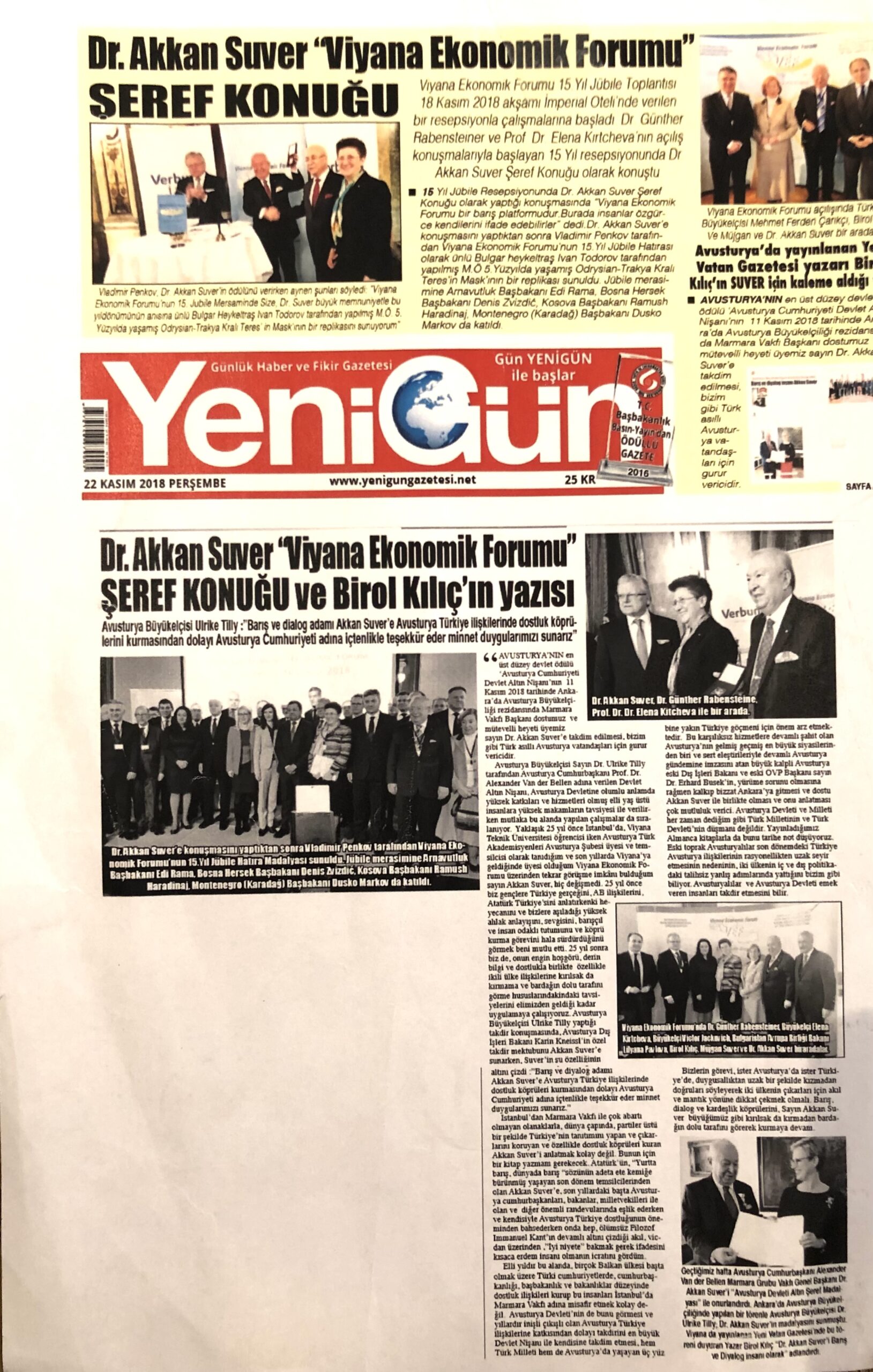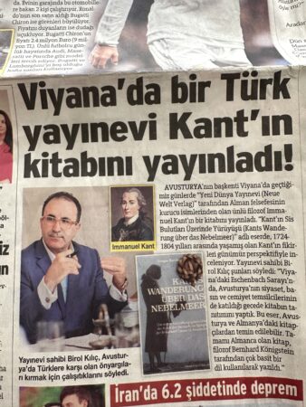 Die türkische Qualitätszeitung Cumhuriyet (Die Republik), die älteste Zeitung der Türkei, hat am 28. September 2025 in ihrer Prominenten-Rubrik auf Seite zwei einen Essay mit dem Titel „Die Gerechtigkeit, die im Herbst auf die Bühne fällt“ von Birol Kılıç, dem Herausgeber der Neuen Heimat Zeitung – Yeni Vatan Gazetesi aus Wien, veröffentlicht. Die „Neue Heimat Zeitung“ (Yeni Vatan) hat den Artikel übersetzt. https://www.yenivatan.at/der-herbst-auf-der-buehne-wiens-die-stille-der-gerechtigkeit-und-die-innere-reise-des-menschen/