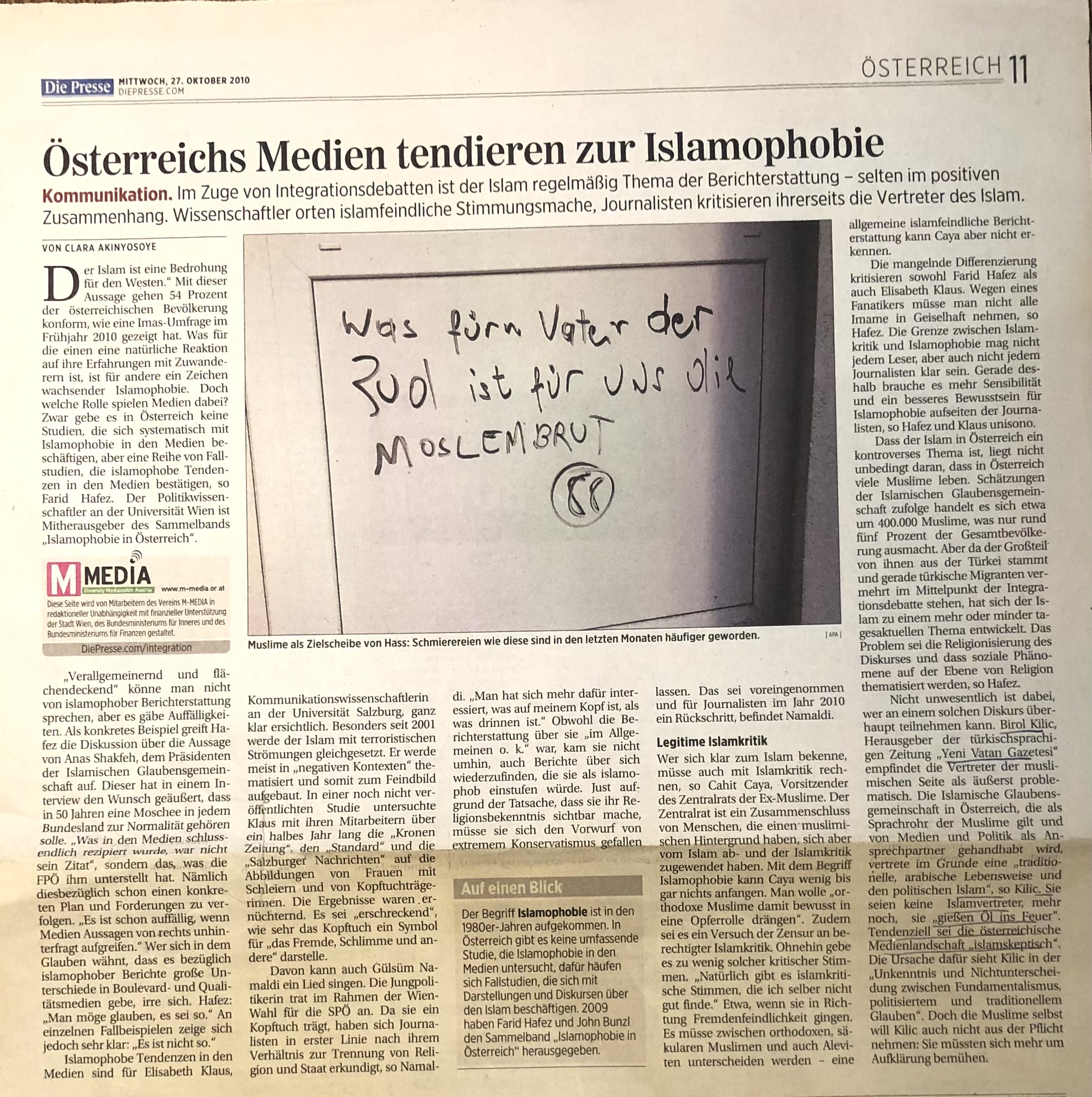27.10.2010: Österreichs Medien tendieren zur Islamophobie – DiePresse