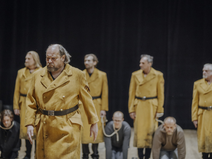 6 Nisan Cumartesi günü saat 18:00’de, Adolf Hitler’in Viyana Belediye Binası’nın derme çatma balkonundan yaptığı konuşmadan neredeyse tam 86 yıl sonra, performans sanatçısı Flatz, Burgtheater’da ve çevresinde o zamanı ironik bir şekilde hatırlatacak. Burgtheater’ın ön cephesinde yer alan bir enstalasyon, iki üflemelinin „Ich hatt‘ einen Kameraden“ ve „Junge, komm bald wieder“ parçalarını çalacağı bir törenle açılacak. Performans santçısının 1998’de ölen Danua cinsi köpeği „Hitler „in kafası bulunan on kırmızı bayrak, tiyatro girişinin üzerindeki aynalı balkonun replikası gibi sergilenecek. Balkonun kendisi kullanılmayacak ancak oyuncu Bibiana Beglau, Hitler’in üç hareketini buraya yerleştirilen bir LED duvarda döngü halinde canlandıracak. Beglau, oyunun bir parçası olarak saat 20:00’den itibaren sahnede Hitler olarak görünecek. Alman Aktör Rainer Galke ise dönemin Viyana Belediye Başkanı Hermann Neubacher’i canlandıracak.