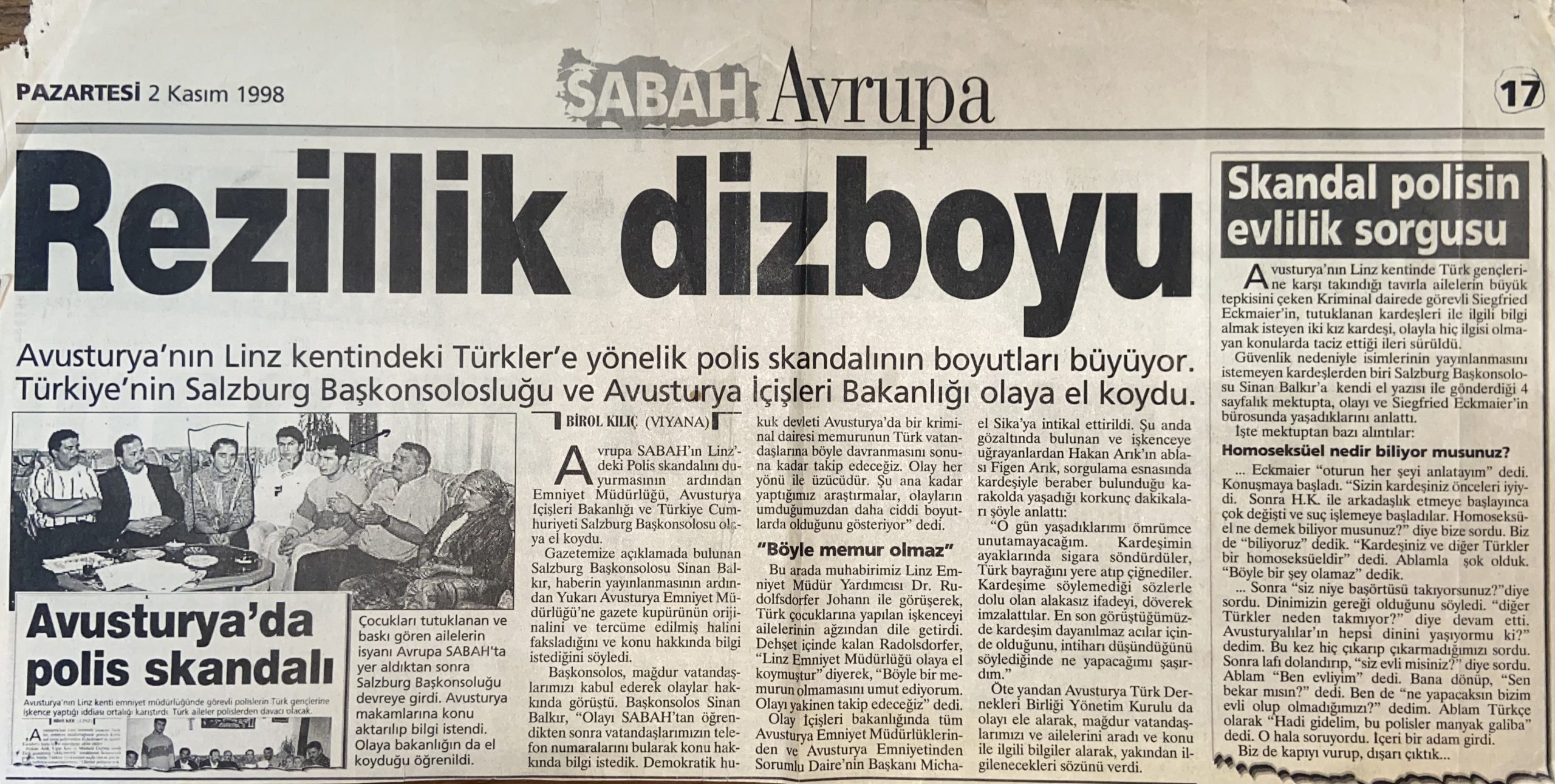 Sabah Avrupa-Linz 1998 : „Rezillik diz boyu“ Freitag, 4 Dezember 1998, 14:11 Teilen Facebook X LinkedIn Tumblr Reddit WhatsApp Viber Als E-mail verschicken Drucken Freitag, 4 Dezember 1998, 14:11 Teilen Facebook X LinkedIn Tumblr Reddit WhatsApp Viber Als E-mail verschicken Drucken Teilen Facebook X LinkedIn Tumblr Reddit WhatsApp Viber Als E-mail verschicken Drucken
