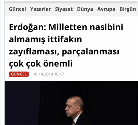 AKP’li sayın Cumhurbaşkanı Erdoğan 2019: „Adı Millet İttifakı ama milletten nasibini almamış ittifakın zayıflaması ve parçalanması çok çok önemli.“