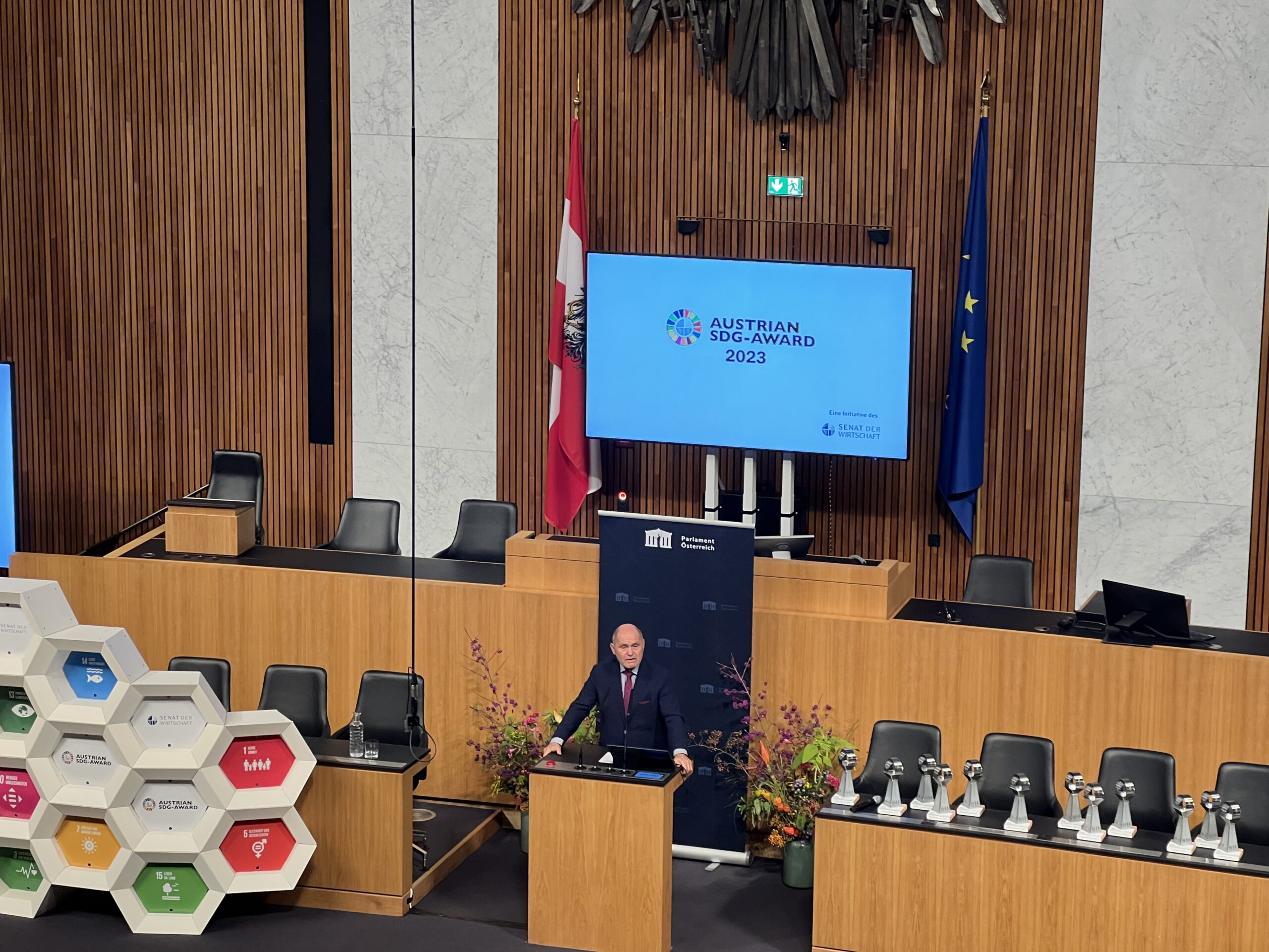 VİYANA. Avusturya Parlamentosu Başkanı Wolfgang Sobotka’nın huzurunda Ekonomi Senatosu, Parlamento Genel Kurul Salonu’nda Avusturyalı sürdürülebilirlik öncülerini ödüllendirdi. Her yıl kuruluşlar, projeler ve girişimler, Küresel Sürdürülebilirlik Hedefleri (SDGs) çerçevesinde toplumumuzun yaşam koşullarını iyileştirmeye yönelik örnek kararlılıkları nedeniyle onurlandırılıyor.