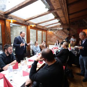 Viyana´da yaşayan Avusturya`lı Türk yayıncı Birol Kılıç, yemekte bir konuşma yaparak, Sırbistan ve Türkiye kökenli yüz binlerce insanın 50 yılı aşkın bir süredir Avusturya işçi sınıfını oluşturarak barış içinde bir arada yaşadıklarını anlattı. Son dönemde artan yabancı düşmanı kışkırtmalara karşı kardeşlik unsurunun altının çizilmesi gerektiğine dikkat çeken Kılıç, sosyal barışın Avusturya ekonomisi için çok önemli olduğunu belirtti. Sırpların ve Türklerin 600 yıllık bir ortak geçmişten düşmanlık değil, dostluk dersleri çıkarması gerektiğini belirten Kılıç, “Türkçede Balkan sözcüğünü “bal” ve “kan” sözcüklerinden oluşması ilginçtir. Bardağın dolu tarafını görelim derim. Ortak tarihimizde artıları, eksilerden daha çoktur, Sırp medya mensupları bunu görmeli. Viyana’da yaşayan Türk asıllı bir Avusturya vatandaşı olarak Sırp halkına sevgilerimizi ve saygılarımızı dile getirmek isterim” diye konuştu.