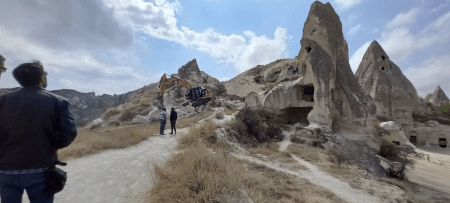 Yapılanın yasal olmadığını söyleyen Tokmak, “Ortahisar – Göreme arasına 2.2 km duble bir yol açılıyor. Burası doğal sit alanı. Şu an dozerlerin çalıştığı yer 11. yüzyıla ait bir Bizans Manastır kompleksi. Kapadokya’ya böyle bir çalışma yapılamaz. Bu kadar tepkiye rağmen durmuyorlar. Resmen yakıp yıkıyorlar. Buradaki bütün peribacalarını yıkacaklar. Buralar yumuşak kayalar, bunlar küçük sarsıntılarla kırılmalara neden olur. Bilim kurulunun buna karar vermesi gerekirken Alan Başkanlığı tek başına burayı ‘yapın‘ diyor. Ne üst ne de alt ölçek planlamaları var. Burada yasal bir tane yaklaşım yok” dedi.