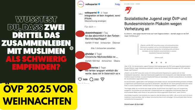 Avusturya Sosyalist Gençlik Örgütü (SJ), Avusturya Halk Partisi (ÖVP) ile Entegrasyon Bakanı Claudia Plakolm hakkında, toplumsal nefreti körüklediği gerekçesiyle savcılığa suç duyurusunda bulundu. SJ, ÖVP’nin sosyal medya üzerinden yürüttüğü entegrasyon kampanyasının Müslümanlara yönelik ayrımcı ve dışlayıcı bir dil içerdiğini savunuyor.