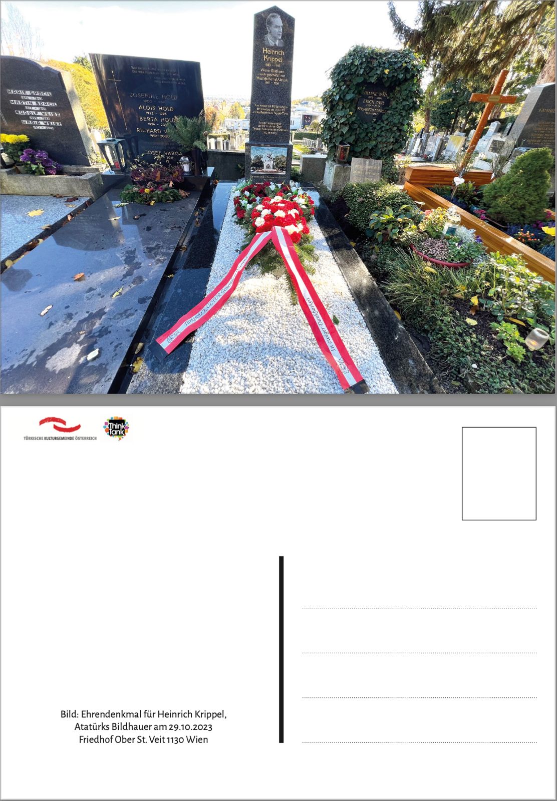 Avusturya Türk Kültür Cemiyeti (TKG), Viyana’nın turistik yerlerine ücretsiz koyulmak üzere, Atatürk´ün heykeltıraşı Heinrich Krippel’in yeni anıt mezarının resmedildiği 1000 adet posta kartı bastırdı.
