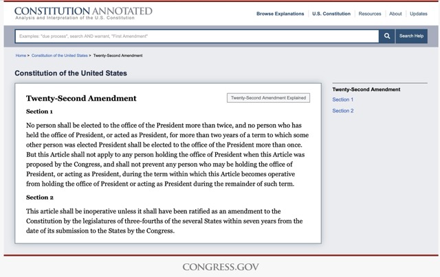 1 -U.S. Constitution Annotated – Twenty-Second Amendment (Congress.gov)