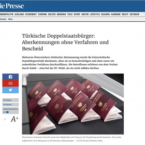 Avusturya makamları çifte vatandaş olduklarından şüphe ettikleri Türklere mektup yazmış ve savunma istemişti. Bu vatandaşlar da hukuki yollara müracaat ederek vatandaşlıklarını geri almıştı veya iptalini engellemişti. Son olay, yüzlerce Avusturyalı Türk’ün kendilerine haber verilmeden vatandaşlıktan atıldığını ortaya koydu. Sadece Viyana’da 20 kişinin mağdur olduğu öğrenildi.