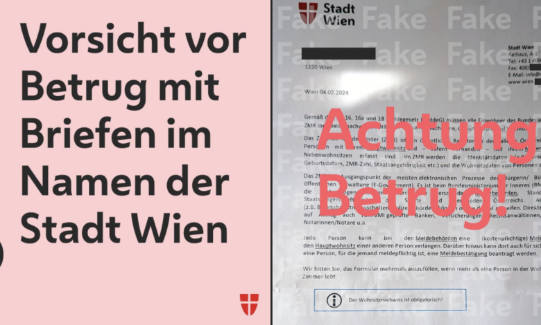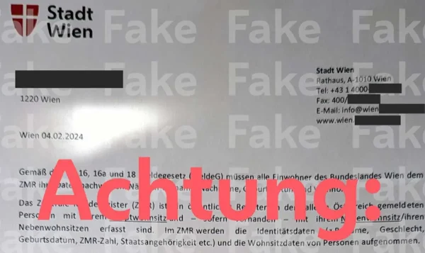 Viyana Belediyesi´nin sosyal medya üzerinden yaptığı uyarı şöyle : “ Şu sıralar Viyana’daki hanelere posta yoluyla, şehir departmanlarından veya yetkililerinden geldiği iddia edilen dolandırıcılık mektupları gönderiliyor. Mektuplarda hassas ve kişisel kayıt verilerinin bir internet formuna girilmesi isteniyor.