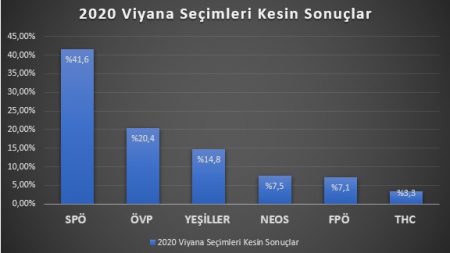 Viyana- Viyana Eyalet Seçimlerinin çarşamba günü yayınlanan ön nihai sonuçlarına göre, kullanılan yaklaşık 740.000 belediye meclisi oyunun yüzde 44’ü posta yoluyla kullanıldı. Yüzde 65,27 veya 739.485 oy ile katılım 2015 seçimlerine göre daha düşüktü. Resmi nihai sonuç, ilgili kararın il seçim otoritesi tarafından alınması halinde 20 Ekim’de açıklanacak.