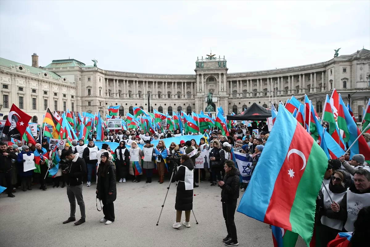 VİYANA – Başkentin önemli meydanlarından Heldenplatz’da toplanan Türkiye ve Azerbaycan vatandaşları, Hocalı Katliamı kurbanlarını andı. Azerbaycan bayrakları taşıyan göstericiler, „Hocalı’yı unutma“, „Karabağ Azerbaycan’dır“, „Ermenistan terörü dursun“ yazılı pankartlar açtı. Viyana Azerbaycan Kültür Merkezi Müdür Yardımcısı Elgün Niftali, anma programına ilişkin AA muhabirine konuştu.