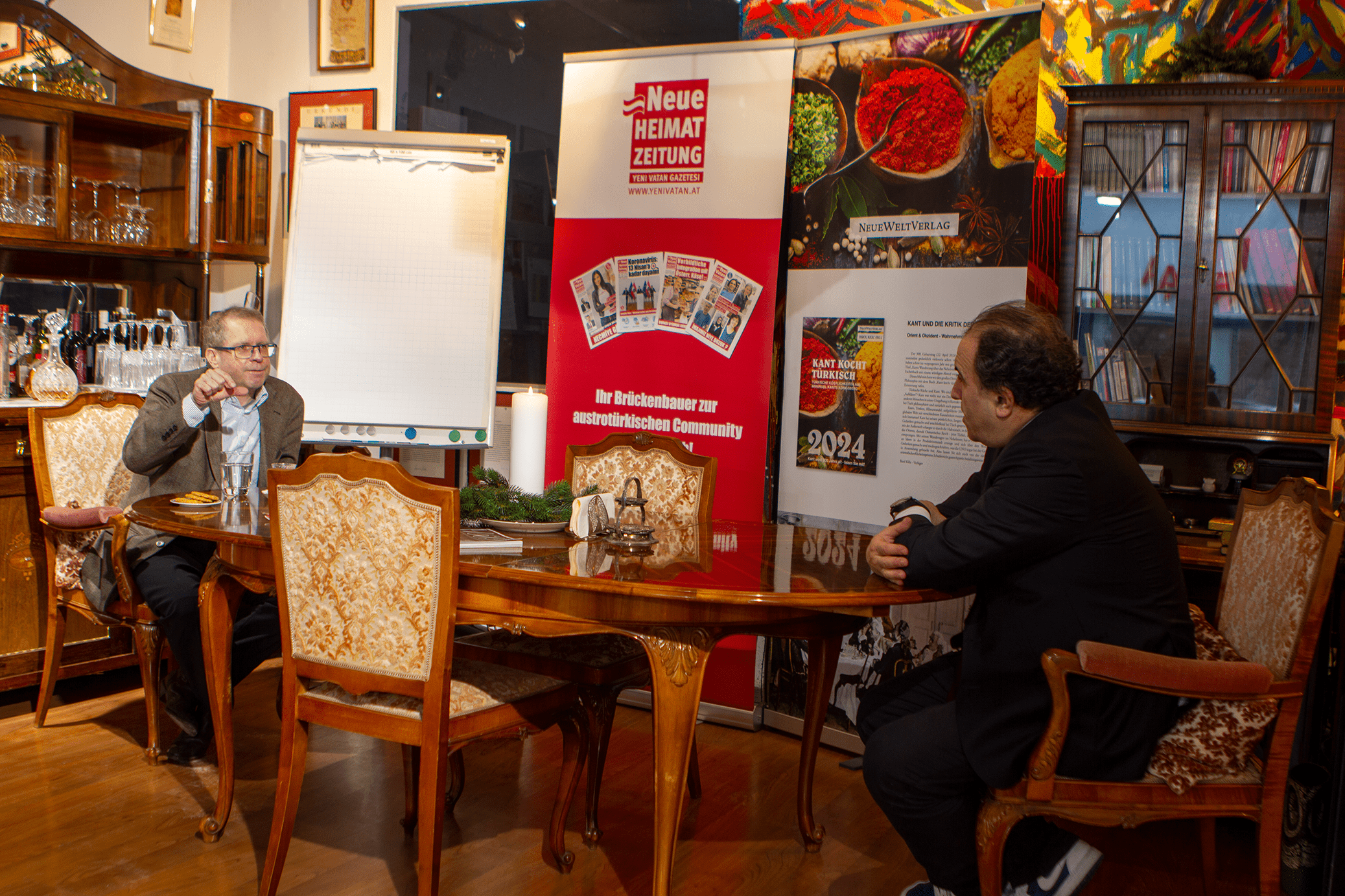 WIEN. Der Präsident des Österreichischen Presserats Dieter Henrich war zu Besuch beim Herausgeber der „Neuen Heimat Zeitung“ Birol Kilic und besprach mit ihm die Qualität und Quantität der Medienberichterstattung. Er freut sich über die neue Mitgliedschaft der „Yeni Vatan Gazetesi („Neue Heimat Zeitung“), die seit 1999 als älteste und ständige österreichische Zeitung im Migrantenbereich auf dem Markt besteht.