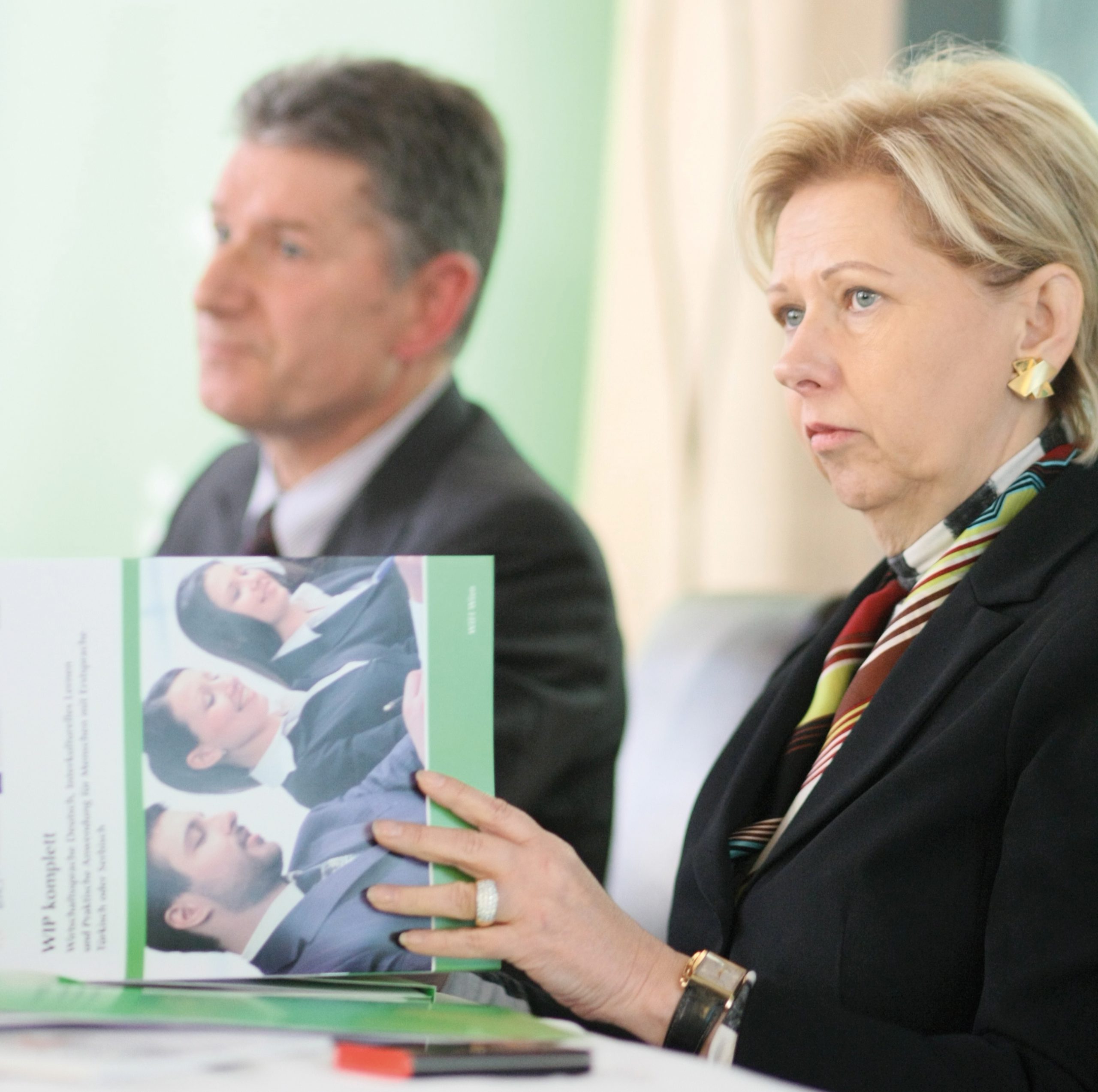 “WIP komplett” richtet sich an Drittstaatsangehörige mit der Erstsprache Türkisch und Bosnisch/Kroatisch/Serbisch, die bereits Deutsch-Grundkenntnisse (GER-Niveau A2) haben und hier arbeiten (wollen). Drei Module werden parallel angeboten, die insgesamt 192 Lehreinheiten umfassen. Jeder Kurs besteht aus Klassen mit bis zu zehn Teilnehmerinnen und Teilnehmern. Berufstätige können den Lehrgang abends besuchen, für Arbeitsuchende steht ein Vormittagskurs zur Verfügung.