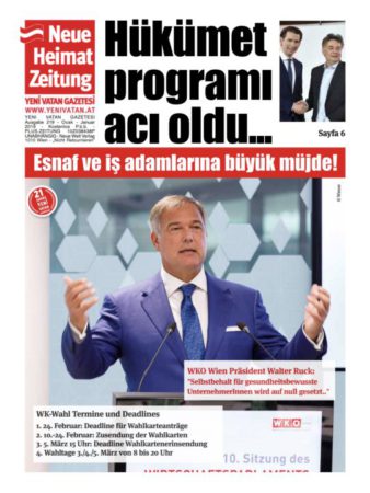 Bei der Januar 2020 Ausgabe der Yeni Vatan Gazetesi (Neue Heimat Zeitung) haben wir über Selbstbehalt,  WK-Wahl Termine und Deadlines berichtet. Bei den Wahlen können mehr als 15.000 Austro-türkische UnternehmerInnen aus verschiedenen Gewerben teilnehmen, die ca. 45.000 MitarbeiterInnen beschäftigen.