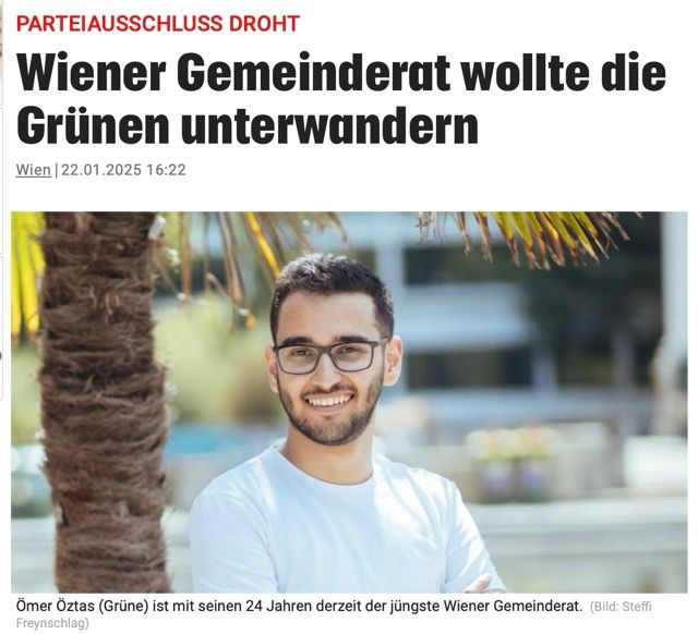 Viyana. Krone Gazetesi, „Kaos içindeki Viyana Eyaleti Yerel Meclis Üyesi Ömer Öztaş (24), Viyana Yeşiller Partisi’ne sızmak istedi. Yaklaşık 100 arkadaş ve takipçisinin yeniden kendisinin seçilmesini sağlaması gerekiyordu. Şimdi Yeşiller Viyana Partisi’nin iki parti lideri bunun sonuçlarını çekmek için harekete geçti.“ diye yazdı.